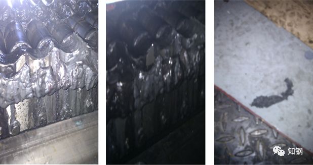 對(duì)于這種情況需要及時(shí)清理定期拆卸檢修,此外還有一個(gè)關(guān)鍵的問題,在清潔整平機(jī)工作輥的過程中,一定要清點(diǎn)使用的角布,絕對(duì)不能讓角布留在整平機(jī)內(nèi),工作輥的表面硬度是很高的,不拍硬的鋼板,如果角布留在整平輥中,運(yùn)行開始后角布就會(huì)與輥?zhàn)幽Σ習(xí)l(fā)熱,就會(huì)磨損工作輥表面,如下圖出現(xiàn)這種情況,就會(huì)在鋼板表面產(chǎn)生壓印。