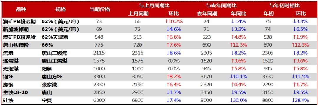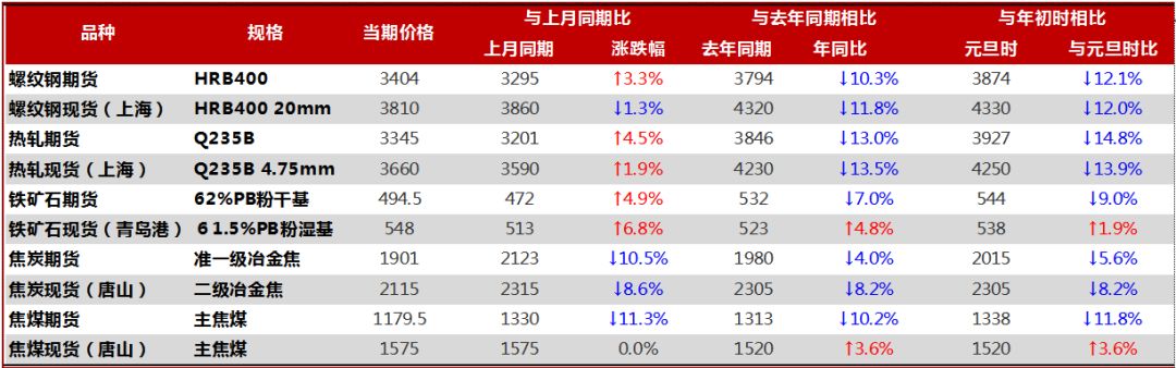 圖表3 鋼材和原材料主要品種期現(xiàn)貨價(jià)格變化情況
