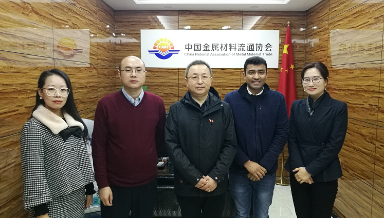 2018年11月23日上午,中國金屬材料流通協(xié)會(huì)副會(huì)長兼秘書長陳雷鳴在京會(huì)見了印度SteelMint公司CEO Dhruv Goel、商務(wù)協(xié)調(diào)員李廣輝一行,雙方就搭建中印企業(yè)家交流合作平臺(tái)、開展信息服務(wù)以及戰(zhàn)略合作等事宜進(jìn)行了深入交流。