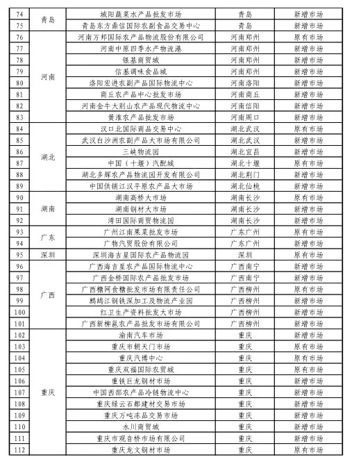 為推動商品市場創(chuàng)新發(fā)展,強(qiáng)化市場流通功能,按照《商務(wù)部辦公廳關(guān)于完善商品交易市場重點(diǎn)聯(lián)系機(jī)制的通知》(商辦流通函〔2020〕156號,以下簡稱《通知》)要求,我們組織地方商務(wù)主管部門推薦了新一批重點(diǎn)聯(lián)系商品市場。根據(jù)《通知》中重點(diǎn)聯(lián)系市場確定的基本原則,擬確定增補(bǔ)重點(diǎn)聯(lián)系市場67家。同時,由于市場規(guī)模和信息報送工作不符合要求,擬將天津新南馬路五金城等5家市場調(diào)出原重點(diǎn)聯(lián)系市場名單。現(xiàn)將調(diào)整后商務(wù)部重點(diǎn)聯(lián)系商品市場名單(見附件)予以公示,期限為2020年11月27日-12月3日。如有異議,請在公示期內(nèi)將書面意見反饋至商務(wù)部流通發(fā)展司。